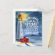 Inspirational quote scripture postcard depicts a watercolor lighthouse with the light shining through the blue snow filled night sky. It features a portion of Bible Verse Isaiah 60:20, "The Lord will be your everlasting light."
