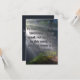 This greeting card showcases a design that features a Frutiger print font with navy blue letters silver coloured outline displaying the "Isaiah 8:20" KJV bible scripture verse over this picture of the deep forrest surrounded with trees and the sun shining through in the background of this faith based theme. This verse is referencing the Book Of Isaiah 8th chapter showing the 20th verse in this bible scripture quote theme from the King James bible with the words "The Will Of God!" on the back. Made with high quality, full colour printing on a 3.5" x 5" (portrait) or 5" x 3.5" (landscape) matte paper made and printed in the USA.