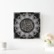 Arabesque inspired decorative silver fractal lace design with matching Arabic calligraphy in the center, for daily Muslim blessings at home or office .