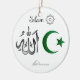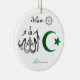 The fifth part of my "World Religions" series, Islam. The ornament features "Allah" in arabic and the rub el hibz along with the crescent moon and star in the colour green. The back features a passage from the Holy Qur'an.