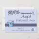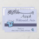 Celebrate a beautiful Aqiqa for your little son - and start to invite all friends and family with this beautiful Islamic invitation card. On the front side, the name of your baby is written under 'Bismillah' - In the name of Allah - and the father and mother are added. On the back you will find a beautiful print of a hadith about the Islamic celebration of Aqiqa. All fields are customisable to your needs.