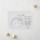 This simple design features the words "Masha Allah Tabarak Allah" in arabic calligraphy, and an illustration of a blue and silver rainbow and bunny with ballons. You can alter the background colour, and font, as well as the message.