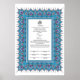 Islamic Blue border patterns Nikkah certificate. The name and dates can be customized to your preferred text.
