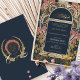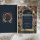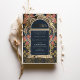 This exquisite wedding invitation marries the timeless elegance of Art Nouveau design with the rich cultural tapestry of Islamic art. The front of the invitation features a harmonious blend of deep navy blue and burgundy tones, brought to life with luxurious gold foil accents that shimmer against the high-quality paper. The intricate tree design, a symbol of growth and unity, is delicately interwoven with blooming flowers, representing the blossoming of new love. The back of the card presents a continuation of this lavish theme, with an ornate gold foil frame encapsulating the couple's initials, set against a midnight blue backdrop, creating an aura of sophistication and grandeur. This invitation is perfect for couples seeking to make a statement of elegance and cultural richness on their special day.