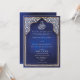 Elegant Islamic Gold and Blue Arch Ornate Arabesque Wedding Invitation