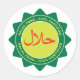 This sticker is a islamic certification mark indicating that the product it is affixed to is Halal, meaning it adheres to Islamic dietary laws. The word "Halal" or "حلال" is written in both Arabic and English. This sticker can be used on food packaging, containers, and labels to signify that the product is permissible for consumption by Muslims.