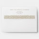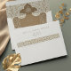 This exquisite envelope set is the perfect outer garment for your wedding invitations, featuring a lace-effect interior that embodies the essence of Islamic art. The delicate pattern, printed in subtle shades of cream and ivory, casts a vision of elegance as soon as your guests unveil the envelope. The exterior, equally elegant, carries the names and address in a classic typeface, bordered by a strip of matching lace-effect design. This set is a prelude to the splendour of your wedding day, promising an event wrapped in beauty and grace.