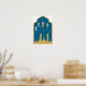 This captivating wall print features a golden mosque silhouette framed within an ornate arch, set against a deep blue night sky scattered with stars and a glowing crescent moon. Three hanging lanterns add a festive touch, symbolizing the warmth and reflection of Ramadan and Eid. The elegant composition blends traditional Islamic architecture with celestial beauty, making it perfect for prayer spaces, seasonal decor, or meaningful gifts that celebrate faith and serenity.