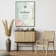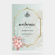 Your guests arrive and are immediately drawn to this stunning sign. The gold Islamic frame radiates elegance against the shimmering teal tundra background, while the delicate watercolor florals bring a touch of nature’s beauty. The trendy 'Welcome' font adds warmth, while the Quranic verse, “And He placed between you affection and mercy,” resonates deeply, creating an inviting atmosphere that perfectly captures your celebration’s essence.