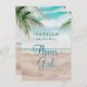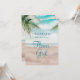Island Breeze Painted Beach Scene, with Ocean Waves, Sandy Beach, and Palm Trees, with a beautiful teal blue sky. With Modern Typography Script Fonts. A Summer Tropical Beach, Or destination wedding design - Personalised Wedding Will you be my Flower Girl proposal card!