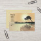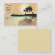 Gold and yellow coloured business card with a silhouette of an island and palm trees.