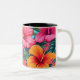 Tropical pink and orange hibiscus blossoms add a summery island vacation touch to your next cuppa! The Island Hibiscus coffee mug matches the Island Hibiscus throw pillow. They make great gifts separately or together!