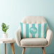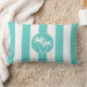 Add an island style accent to your home with this aqua and white lumbar pillow featuring a logo style medallion in the centre with two swaying palm trees. An awning stripes pattern adds carefree styling to the design. This pillow is a wonderful choice for beach homes, vacation home, or any spot in your home where you want to add a coastal accent to your decor.