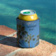 Relax in paradise with a can of your favourite drink.  This can cooler features tall palm trees reaching up into the bright blue sky.  This photo captures the long thin trunks and the bright green palm branches of these tropical trees.  "On Island Time" can easily be customised if you desire.  The same design appears on both sides of the cooler.
