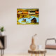 Poster of a naive painting by artist Barbara Raymond Stewart, CAC (1941-2000). The title of the painting is "Island Treehouse". Barbara enjoyed painting her memories of Upstate New York, and is in collections across the USA.