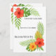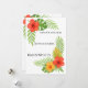 Vibrant hibiscus, monstera, and palm leaves in a bold tropical palette—great for destination weddings or luau-themed birthdays.