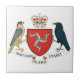 The crest is supported by a peregrine falcon - derived from the time of King John I of Mann; and a raven as featured in Norse mythology in keeping with the Viking history of the island.