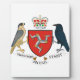 The crest is supported by a peregrine falcon - derived from the time of King John I of Mann; and a raven as featured in Norse mythology in keeping with the Viking history of the island.