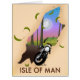 The Isle of man motorcycle map travel poster print with the Moon rising in the background.