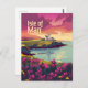 A charming and nostalgic depiction of the Isle of Man, situated in the Irish Sea between Great Britain and Ireland. The design highlights the island's rugged coastline, rolling green hills, and historic landmarks such as Peel Castle and the Laxey Wheel. Rendered in a vintage style, the artwork captures the timeless allure and natural beauty of the Isle of Man, inviting viewers to explore its rich heritage and scenic landscapes.