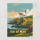 A charming and nostalgic depiction of the Isle of Man, situated in the Irish Sea between Great Britain and Ireland. The design highlights the island's rugged coastline, rolling green hills, and historic landmarks such as Peel Castle and the Laxey Wheel. Rendered in a vintage style, the artwork captures the timeless allure and natural beauty of the Isle of Man, inviting viewers to explore its rich heritage and scenic landscapes.