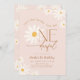 Isn't She Lovely Isn't She ONEderful daisy 1st birthday party invitation. Cute design in blush pink. Features daisy flowers and trendy modern typography script font. Perfect for a stylish boho first girls bday celebration. Personalize with your own details. Printed Zazzle invitations or instant download digital printable template.