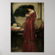 Fine art painting by James William Waterhouse of young maiden looking into a crystal ball.