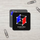Isometric Cube - White, Blue and Red on Black Square Business Card