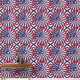 This unique wallpaper and curtain design features an eye-catching isometric pattern of the USA flag. The flag is represented by blue stars on a white background, enclosed within a red circular border. The stars are arranged in a captivating radial pattern, with the central area showcasing the iconic blue field. This design adds a touch of modern geometric flair to any space while celebrating American patriotism.