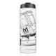 insulated bottle with backpack crushing a car. Meny Bikes logo built in.
