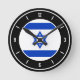 Israel Flag Elegant Round Clock with the Israel flag positioned in the middle and lovely white clock numbers on the clock edge. Delightful black background with the white oval elements finalize the design putting emphasis on the elegance. Beautiful combination of black and white with the skillful integration of the national flag colors make this clock the perfect gift and the great show piece on the wall. © CountriesOfTheWorld