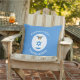 Outdoor pillow for holiday and Hanukkah decor featuring an angel dressed in the blue and white flag of Israel. Designed for families of multiple religions. The Hanukkah Israeli flag angel flies inside a white circle of squiggly squares, surrounded by a background of blue squiggly squares. Add a name to personalise. Customise with the year. Or, add your own text.