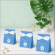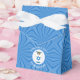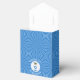 Personalised tent shaped favour box showing an angel wearing the flag of Israel for your holiday or Hanukkah amusement. The Israeli Flag angel is found inside a white, fractal circle of squiggly squares. The background is a blue fractal squiggly squares. Add your own text or personalise with a name, holiday, and the year. Fun Hanukkah gift.