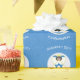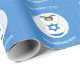 Design, on personalised gift wrapping paper, has an angel wearing the Flag of Israel. Above, the words, in white letters, read, HANUKKAH 20??. Below, a place for a name, yours, for a personalised look, or, your gift recipient's for a thoughtful customised gift wrap. The angel sits on a circle of white that is a fractal. All of it sits on a fractal background of blue squiggly squares. Lovely for Hanukkah gift decorating this holiday season.