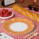 Add a fun, coordinated touch to your rehearsal dinner, bridal shower, or even a more casual math-themed wedding with these paper plates, featuring a bright orange rim decorated with a pattern of white graphs, Fibonacci spirals, integrals, and pi, with a white banded centre section that completes the fun and geeky look.