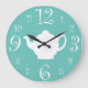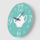 Cute retro clock with a tea pot at the centre and customisable background colour.