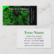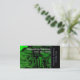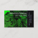 Graphic of a circuit board with a neon green tint. Black side area for your company name in vertical text. This business card template has many uses for computer programmers, IT professionals, Computer technician, and any computer related professional occupations.