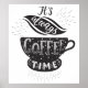 elevate your interior design with this striking typography poster featuring a bold hand lettered quote. this high quality print showcases a classic black and white aesthetic that fits perfectly with modern or traditional kitchen decor. the vintage lettering captures the essence of cafe culture making it a standout piece of wall art for any caffeine addict. whether you are decorating a home coffee station or a professional office space this poster serves as a stylish reminder that it is always time for your favorite morning beverage.
