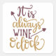 It is always wine o'clock square sticker