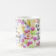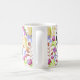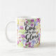 Front of mug has modern hand-lettered style typography design with words, "It is Well with my soul" words from the well-known hymn. Type is surrounded by colourful watercolor flower border on all sides. Back has duplicate flower pattern with words, "To God Be The Glory" in same style.