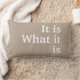 “It is ... What it is”... Inspirational pillow, Soft Khaki tone with White cursive lettering.