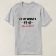 Tired of hearing the over-used phrase "it is what it is?" Turn this phrase that people use to avoid changing a situation and turn it into a positive and KNOW that change is possible if you make it so. (Basic men's tee available up to 6x)