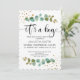 Modern hand lettered "it's a boy" and watercolor rustic eucalyptus baby shower invitation.