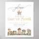 Invite your guests to share their love and warm wishes with this “It Takes a Village” baby shower guest book sign. Featuring charming watercolor cottages and a vintage baby carriage, this sign adds a heartfelt touch to your welcome table while guiding guests with ease. Personalize the parents’ names and shower date to create a truly meaningful detail for the day.