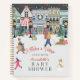 This festive "it takes a village" baby shower guest book features a Christmas town/village with people on christmas shopping, a cafe, theatre, snowman and sleigh. The reverse side features a red background with white snow patterns. Personalise it for your needs. You can find matching products at my store.