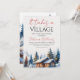 Celebrate the upcoming arrival of your little one with this cosy winter baby shower invitation. Featuring a charming snowy village scene with pine trees and a warm, welcoming house, this design beautifully captures the spirit of togetherness with the slogan “It Takes a Village.” Perfect for winter gatherings, this invitation blends seasonal charm with a heartfelt message, making it ideal for parents-to-be surrounded by family and friends. Personalise easily with your event details for a unique and memorable touch.