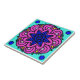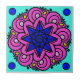 Psychedelic mandala pattern, pink, teal, blue, yellow.