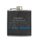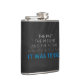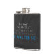 The flask itself is fine. It’s a cheap flask, obviously bought in bulk, however am prepared to overlook that. Given that it is a personalized item, I would have liked to have seen gift boxing instead of the generic packaging. Terrible printing, and/or quality. It’s a cheap, tacky vinyl. It is not cut straight and is also applied in a way that it is overhanging the bottom, causing the glue to catch on items and it will eventually roll and tear, damaging the wrap.
