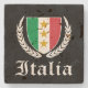 The coasters are gorgeous, a quality feel and heavy weight. They look like a precious archeological find. A rustic stone juxtaposed with a modern floral black and white print. I like the way the print goes slightly imperfect on the cut stone edges giving them a kind-of natural beauty.