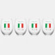 Set of four personalised stemless wine glasses feature the flag of Italy, or in Italian, Bandiera Italiana. Below, the word ITALIA, in the green, white and red stripes of the il Tricolore. Above, a place for your name. Each glass can be personalised with a different name, if you prefer. Create a personalised touch for yourself or add someone else's name for a customised gift. Great to take to a family reunion, club, or travel group.